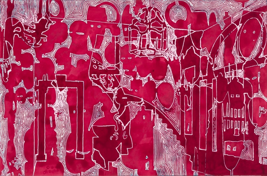 Les peintures sur papier monté sur toile prolongent cette approche par une superposition intuitive d’images issues des archives de l’atelier de l’artiste. À l’aide de tempera hydrosoluble, de lavis acryliques et de techniques de réserve, Joseph construit des images partiellement dissoutes, transformées en empreintes négatives de leurs formes d’origine. L’effacement de l’image laisse des traces et des taches qui en érodent la structure initiale tout en la métamorphosant en une silhouette négative de ce qui fut.